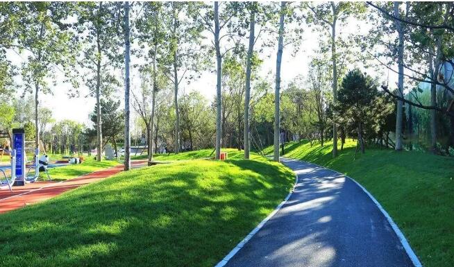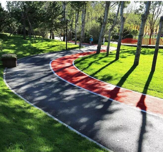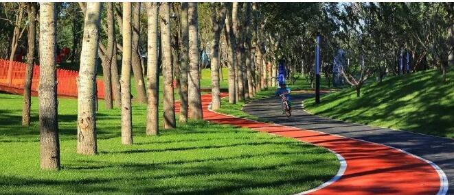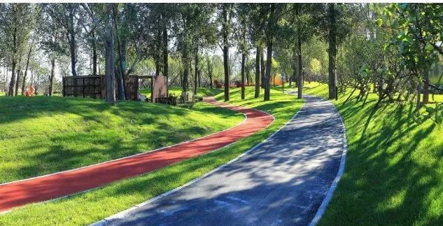 公園中設(shè)計(jì)了2.5 m寬的瀝青道路和1.5 m寬的塑膠跑道兩種路線,