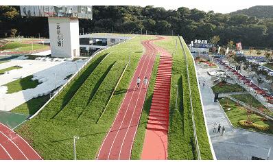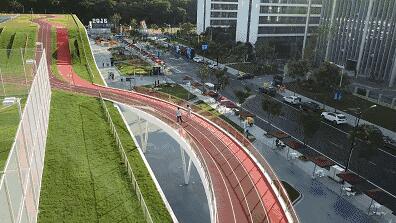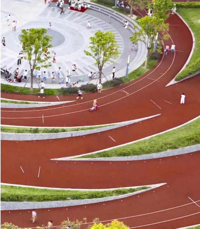 塑造了一個(gè)集跑道、廣場(chǎng)、綠化景觀為一體的生態(tài)系統(tǒng)。