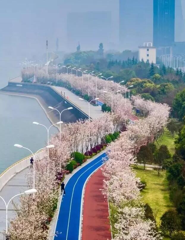 杭州濱江有一條長(zhǎng)達(dá)15.5 km的沿江“最美跑道”,