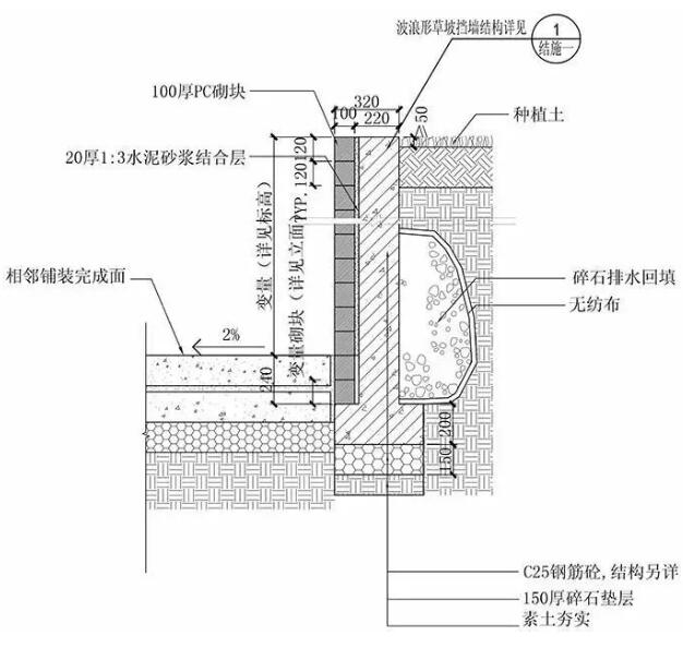 若透水磚基層采用無(wú)砂大孔混凝土?xí)r,其空隙需≤15%,并采用C20等級(jí)強(qiáng)度。