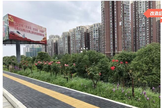 道路綠化進(jìn)行改造提升,補(bǔ)種行道樹、修剪綠化帶,利用現(xiàn)有地勢(shì),打造桂花游園、臘梅游園。