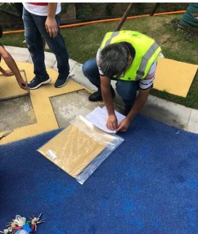 抽檢項目是北京大學附屬小學運動場地改造項目,包括ETPU塑膠跑道、人造草坪、DPU籃球場。抽檢過程是在北大附小代表,家委會代表,行業(yè)代表,第三方檢驗機構CTC國檢集團,項目總包方上海都佰城等多方見證下,現(xiàn)場隨機抽樣簽字、拍照、封存后,由第三方抽檢機構帶回CTC檢驗中心實施嚴格的化驗流程。