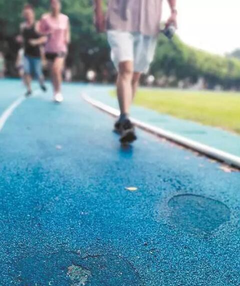市區(qū)中山公園內(nèi)的新塑膠跑道,經(jīng)過三個(gè)月的改造提升,實(shí)現(xiàn)“華麗轉(zhuǎn)身”,不僅顏值高,舒適感也提升了,深受前來運(yùn)動(dòng)健身的市民們歡迎。但是,一些不文明現(xiàn)象也隨之出現(xiàn),比如有些人穿著釘鞋或高跟鞋在跑道上鍛煉和行走,給藍(lán)色的塑膠跑道留下難看的印記。