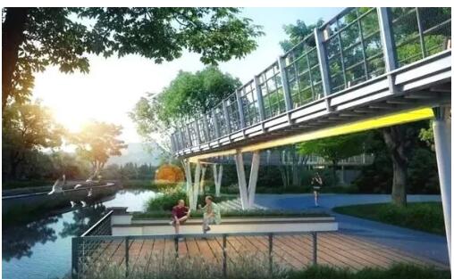 綠道設(shè)計引入海綿城市等環(huán)保理念,架空處創(chuàng)新采用鋼格柵橋面,滿足底部植物對雨水光照的需求,并充分利用原有山洞、水庫等已廢棄設(shè)施,進行二次改造,通過設(shè)計賦予二次生命,喚起人們兒時記憶。穿越市區(qū)、水體、山林,在滿足市民休閑散步緩解出行壓力同時,提升城市品位。