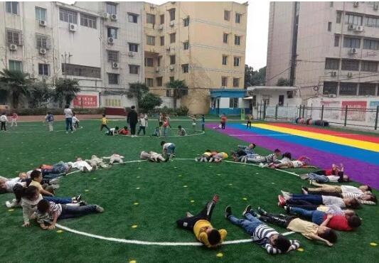 據(jù)悉,該園執(zhí)行園長羅敏在節(jié)前帶領(lǐng)老師們策劃新操場的鋪設(shè)方案,通過一次次的修改,最終敲定現(xiàn)在操場圖案,利用國慶假期,加班加點(diǎn)完成草坪鋪設(shè)。
