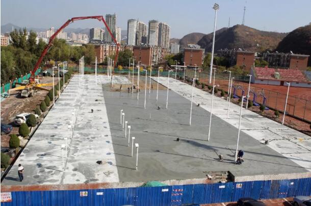 一個(gè)嶄新的露天燈光球場(chǎng)正在施工