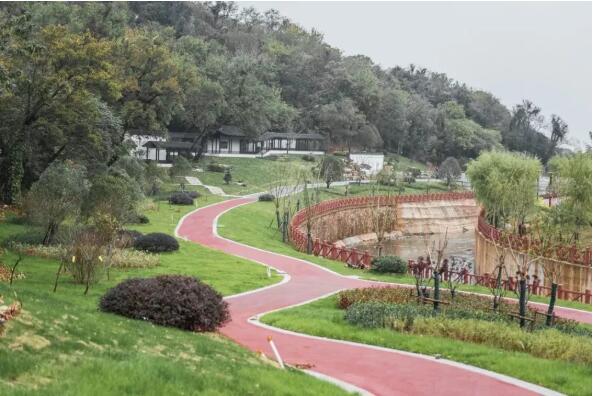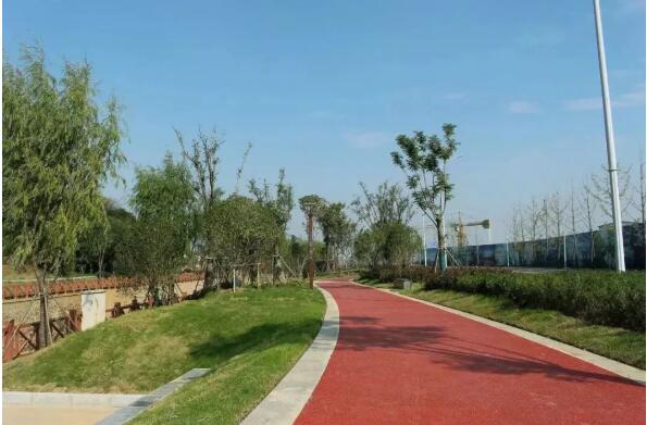 西支沿岸鋪設(shè)的步道采用的是透水混凝土,紅色的路面在這一片綠意中格外搶眼。