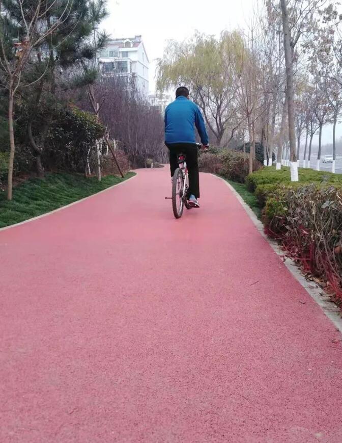 這是國(guó)際上綠道的流行色,首先可以和別的道路區(qū)別,另外在周邊植物的襯映下,視覺景觀效果會(huì)更好。紅色路面看上去像塑膠道,其實(shí)是透水混凝土制成,透水性、保水性、防滑性、耐磨性、景觀性都很好,既能保障騎車人較佳的騎行感受,又能保持道路兩側(cè)生態(tài)系統(tǒng)的連續(xù)。”