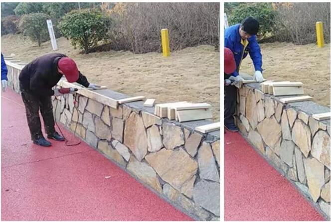 景墻及防腐木坐凳安裝