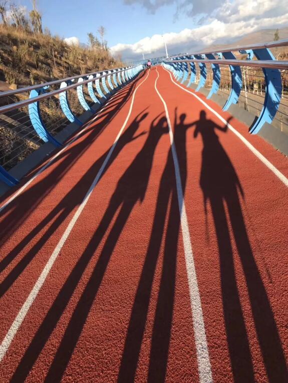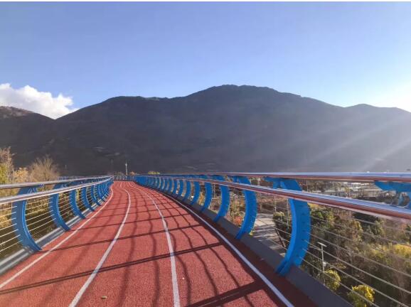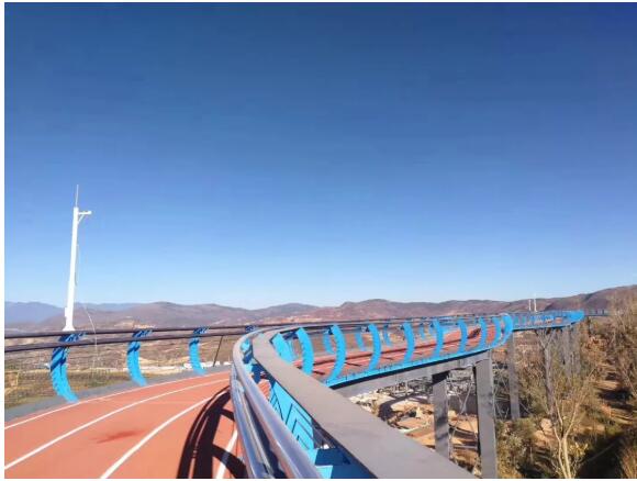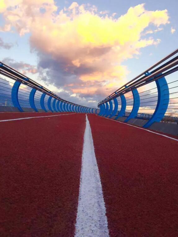 在懸空跑道堪比拍大片,光看圖就覺得養(yǎng)眼。順著鋼琴一樣的臺階爬上坡,就能看到這條特別的跑道,全場1400米,全部用塑膠鋪成。
