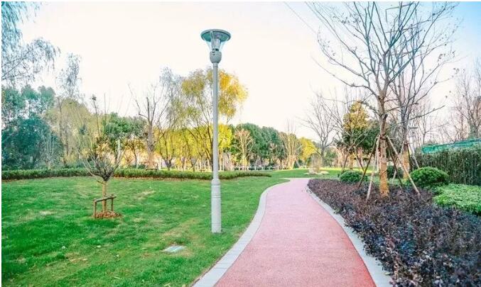 游園內(nèi)所有道路采用透水混凝土鋪設(shè),滿足加強(qiáng)城市建設(shè)規(guī)劃中“海綿城市”對(duì)道路吸納,蓄滲和緩解雨水的要求。