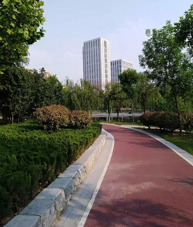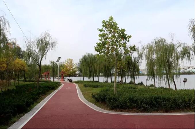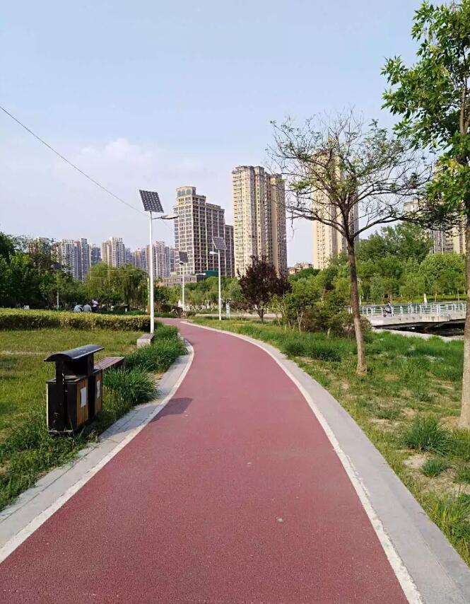 趙王河城市綠道是我市第一條標(biāo)準(zhǔn)化綠道,該綠道投資2400萬(wàn)元,由東華大學(xué)設(shè)計(jì)研究院和上海園林綠化建設(shè)有限公司聯(lián)合設(shè)計(jì),沿趙王河?xùn)|西兩側(cè)建設(shè),南起長(zhǎng)江路,北至長(zhǎng)城路,全長(zhǎng)23公里,整個(gè)路面采用紅綠相間的彩色透水混凝土鋪裝,與趙王河沿線景觀形成有機(jī)串聯(lián),為市民群眾打造了一處“親近自然、綠色健康、運(yùn)動(dòng)時(shí)尚”的開放式環(huán)形綠色生態(tài)廊道。