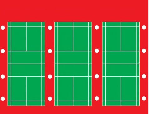 羽毛球場為一長方形場地,長度為13.40米,雙打場地寬為6.10米,單打場地寬為5.18米。球場上各條線寬均為4厘米,丈量時要從線的外沿算起。球場界限最好用白色、黃色或其它易于識別的顏色畫出。按國際比賽規(guī)定,整個球場上空空間最低為9米,在這個高度以內(nèi),不得有任何橫梁或其它障礙物,球場四周2米以內(nèi)不得有任何障礙物。任何并列的兩個球場之間,最少應(yīng)有2米的距離。球場四周的墻壁最好為深色,不能有風(fēng)(羽毛球場地標(biāo)準(zhǔn)尺寸圖解見下圖)。