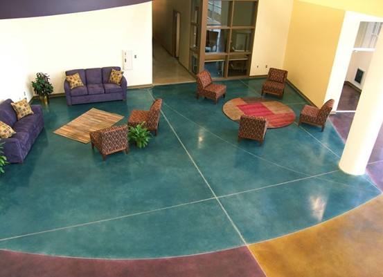 染色地坪是借助獨(dú)特工藝手法,將染色劑均勻滲入混凝土基面中,通過(guò)改變基面的原有的顏色,來(lái)形成各種絢麗的圖案與花紋,使地坪呈現(xiàn)出簡(jiǎn)約卻不平凡的質(zhì)感。