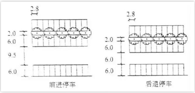 其樹木枝下高度應(yīng)符合停車位凈高度的規(guī)定:小型汽車為2.5m;中型汽車為3.5m ;載貨汽車為4.5m ,但不宜布置花卉。