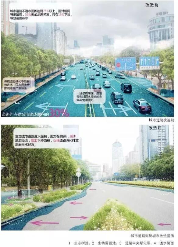 目前,我國正處在城市化快速發(fā)展的關(guān)鍵時(shí)期,城市不透水面積急劇增加。城市道路作為城市主要不透水下墊面之一,占建設(shè)用地的比例超過了30%。與此同時(shí),傳統(tǒng)管道排水方式導(dǎo)致道路排澇壓力大、路面污染嚴(yán)重等突出問題,難以滿足現(xiàn)代城市建設(shè)對生態(tài)環(huán)境的需求。城市道路運(yùn)用海綿城市設(shè)計(jì)策略,在收集利用道路雨水徑流、污染排放等方面可產(chǎn)生巨大的經(jīng)濟(jì)、生態(tài)和美學(xué)效益。