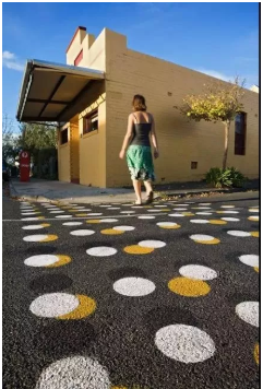 而當(dāng)點(diǎn)以大量序列的形式出現(xiàn)時(shí),能帶給人韻律節(jié)奏和動(dòng)感,在原鋪裝底面上起到打破單調(diào),豐富視覺(jué)的作用。