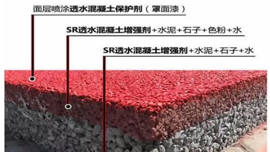 透水混凝土面層:SR透水混凝土增強(qiáng)劑+425水泥+石子+水+色粉