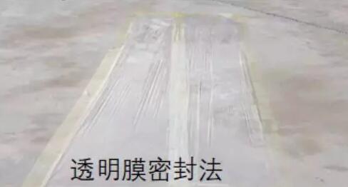 晴天時以透明薄膜平鋪于地面,并以膠帶封合薄膜四周,經(jīng)2―4小時后,若薄膜內(nèi)部呈現(xiàn)結(jié)霧現(xiàn)象,則地面含水率過高,不宜施工。(常用)