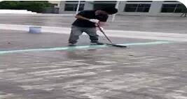 2.若積水深度超過5mm的地方,應(yīng)用彈性層薄涂一道于積水處,再用防水低涂加40~80目砂按1:6~8(重量比)拌和均勻,平整攤鋪于積水處并壓實(shí),(薄涂彈性層作用為保證修補(bǔ)料與基面粘結(jié)牢固;若砂粒較細(xì)>80目,加入量要相應(yīng)減少)修補(bǔ)時注意修邊不要讓修補(bǔ)后的邊高出基面,若有高出需在固化后打磨平整后才能進(jìn)行彈性層施工。