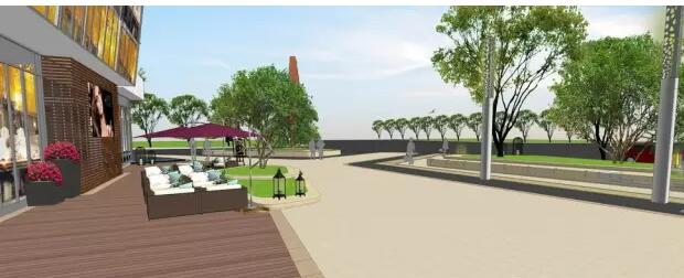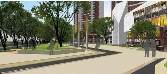 售樓部?jī)?nèi)側(cè)以透水混凝土為主的內(nèi)街街景完工實(shí)景