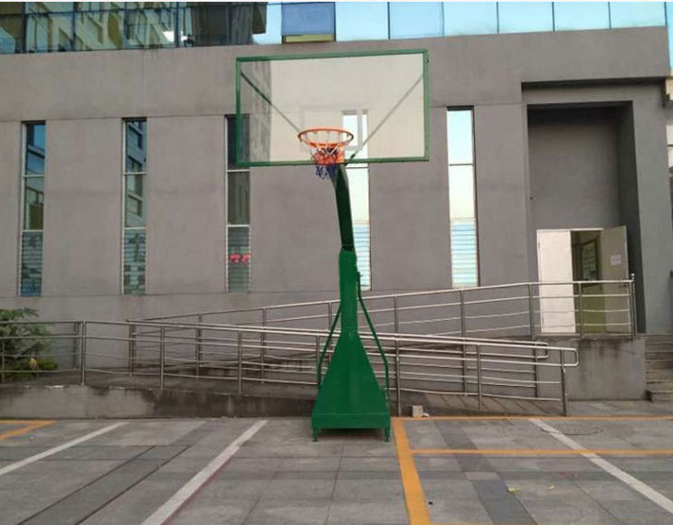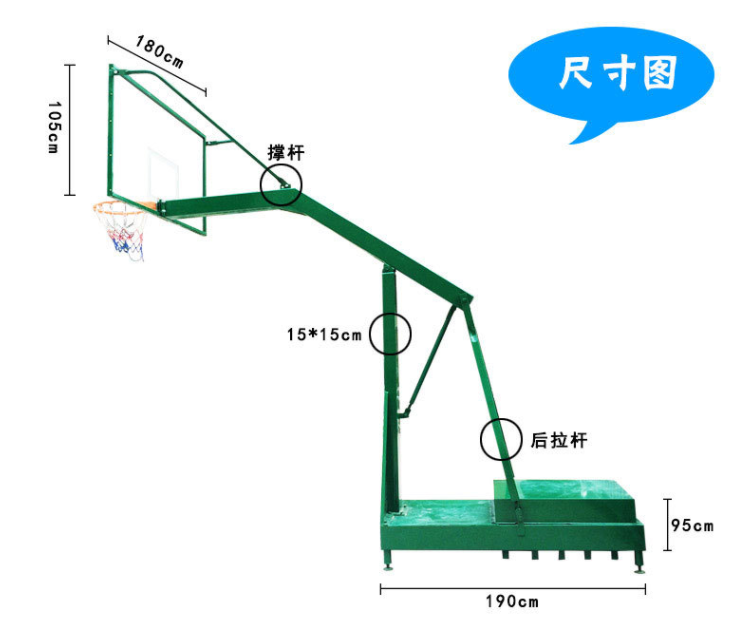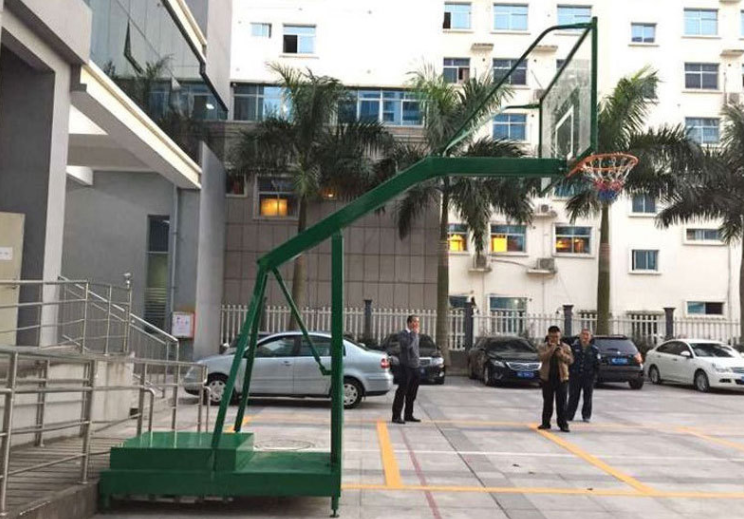把籃球架立起來后,把底座下面放滿沙子或石子,固定籃球架位置