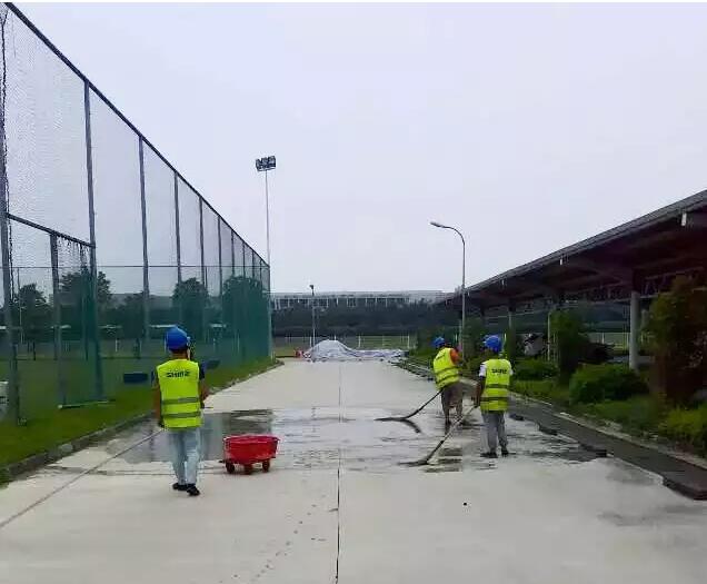 ③新鋪裝的瀝青基礎要等15天保養(yǎng)后,做透氣型跑道可以7天保養(yǎng)