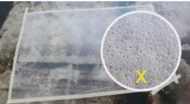 1、晴天高溫時段用1㎡的透明膠膜平鋪于基面,以膠帶封合好四周經2-4小時后,若薄膜內部呈結霧現(xiàn)象,則不宜施工,反之則可施工。