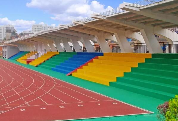 塑膠跑道外觀為顆粒狀結構,非滲水型。使用主材為運動場專用PU 涂料鋪設,并在其表面鋪撒三元乙丙膠粒而成。