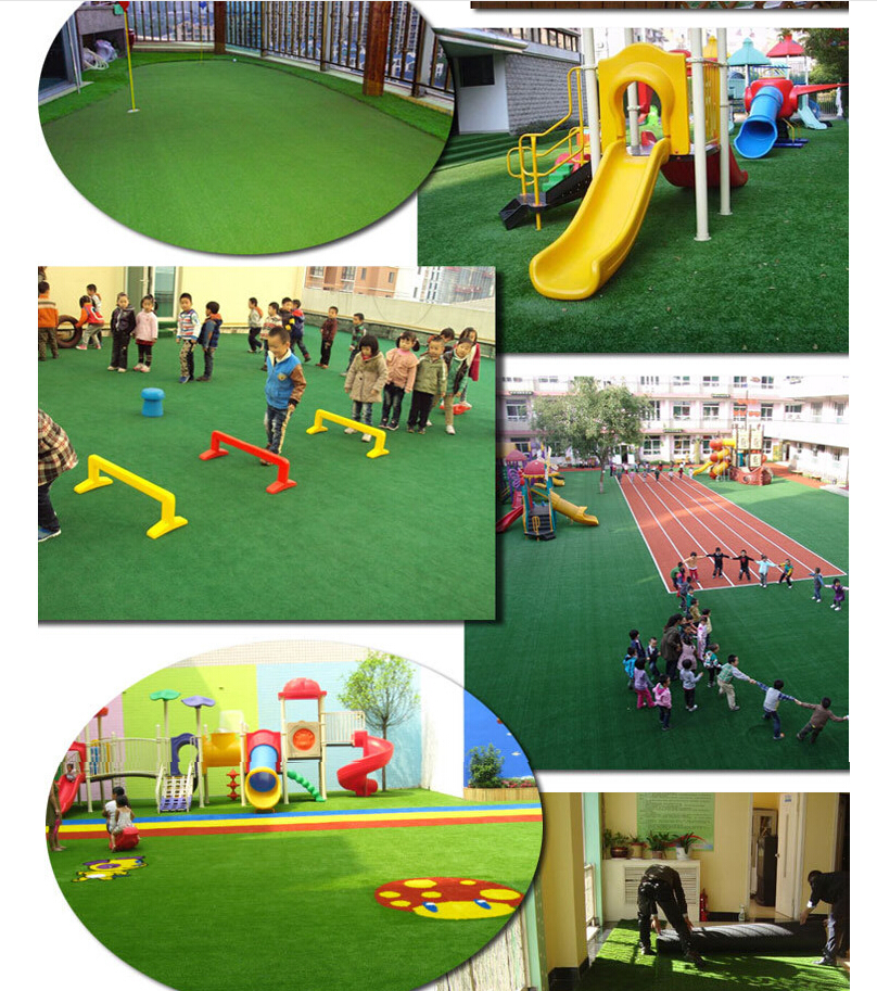 幼兒園人造草坪被廣泛用于幼兒園、以及各類兒童比賽的會(huì)場布置、兒童樂園人造草坪的場地布置