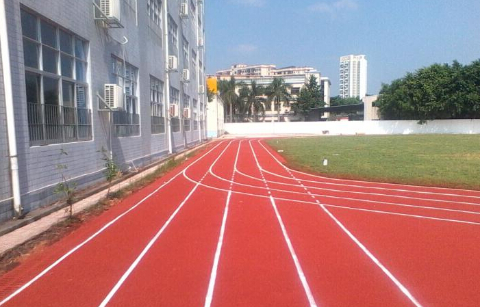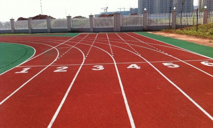 3、面層鋪裝:自結(jié)紋無顆粒塑膠跑道,施工過程采用了先進(jìn)的施工工藝,施工順序?yàn)椋旱谝徊剑夯A(chǔ)的檢測、修整;第二步:鋪設(shè)底膠;第三步:鋪設(shè)清漿層;第四步:鋪設(shè)花漿層;第五步:噴涂場地規(guī)則線。平整度保證達(dá)到95%以上,完全符合國家和國際田聯(lián)標(biāo)準(zhǔn)。